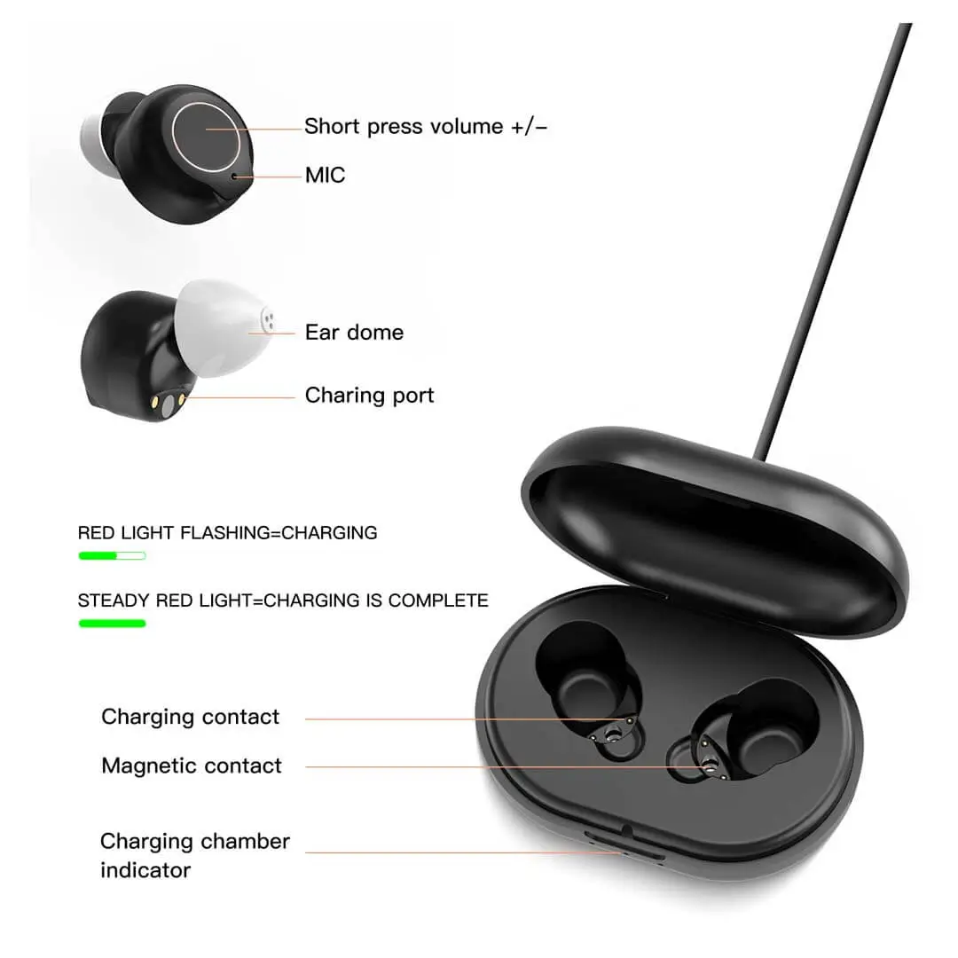 - Magnetic Charging Port: Enjoy unparalleled convenience with GM-902’s magnetic charging port, which ensures extended battery life for uninterrupted hearing clarity.